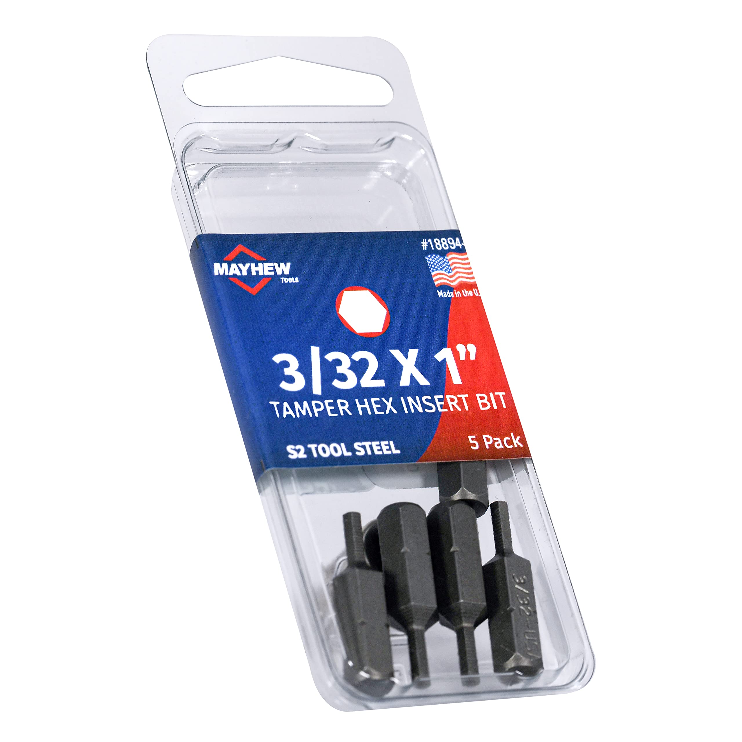 Mayhew Tools 18894-5 USA Tamperproof SAE Hex Insert Bit, 3/32 x 1", 5-Pack
